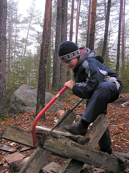 Ekku se pistelee puut poikki ja pinoon että naps vaan.
